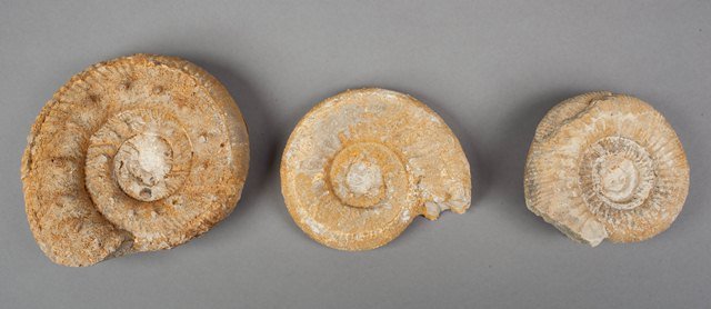 Three yellow ammonites
