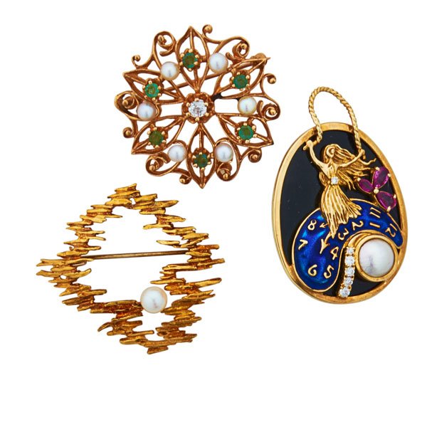VINTAGE LOT OF 3 UNSIGNED BROOCHESFeb 18, 2026Lot of 3 Costume PinsMar 05, 2026Vintage Mizpam Ab Crystals Rhinestones Brooch Pin Lot Of 4Feb 19, 2026Vintage Gold Silver Tone Rhinestone Unsigned Brooch Pin Lot Of 4Feb 19, 2026Vintage Napier J.J. German Floral And Penguin Brooch Pin Lot Of 4Feb 19, 2026Antique 14k Gold Seed Pearl Diamond Gemstone Brooch Lot of 2Feb 18, 2026An Estate Lot of Six Gilt Brooches, Late 20th Century, 52ZF2 days Left14K Gold, Three Pieces4 days LeftThree 14K and 10K Gemstone Ring Earrings and Pin4 days Left1.00 CARAT CITRINE 5.8MM PEARL 0.01 CARAT DIAMOND 18K YELLOW GOLD PIN BROOCHMar 03, 20263 Coro Trifari Francos Gold Tone Earrings And Brooch PinFeb 19, 2026Three 10K and 14K Gold Pins with Peridot and GarnetFeb 26, 2026THREE GEM-SET BROOCHESAntique Mexican 10K Filigree Pearl Suite3 days Left(4 Pcs) 14k-18k Gold Pearl & Diamond Pin CollectionFeb 25, 202614K and Gemstone Pin and a Givenchy Gilt-Metal PinFeb 26, 2026