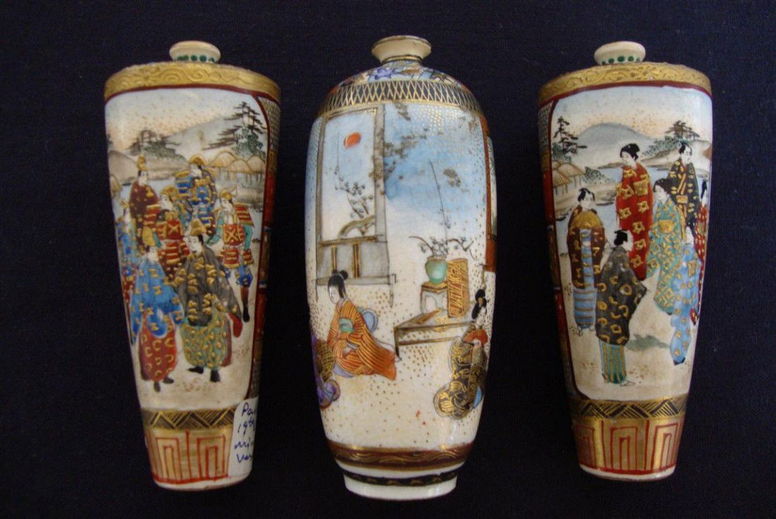 THREE(3) 19TH C. SATSUMA PORCELAIN VASES