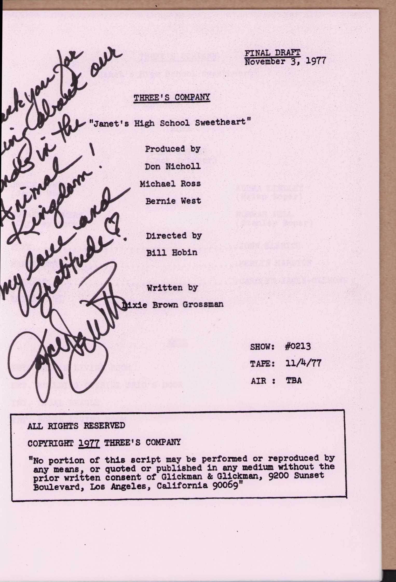 Threes Company script signed