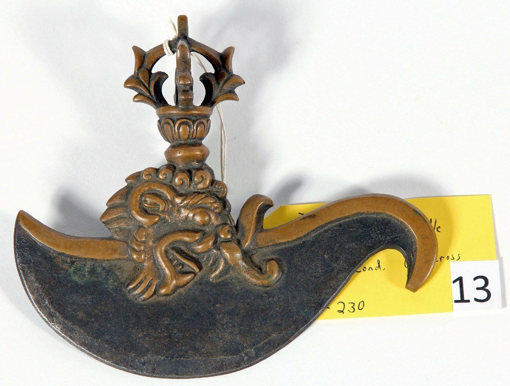 Vintage Dragon Form Brass Paper Knife Letter OpenerTibetan Art Bronze Phurba Ritual DaggerTibetan Art Bronze Phurba Ritual DaggerA Qing Dynasty Tibetan Buddhist Vajra axe swordFeb 28, 2026A Qing Dynasty Tibetan Buddhist Vajra axe swordFeb 28, 2026TIBETAN BUDDHIST RITUAL IMPLEMENTS: VAJRAMar 01, 2026A BRONZE AXE WITH ANIMAL-FACE MOTIFFeb 28, 2026Tibetan Gilt Bronze Ritual Kartika KnifeMar 07, 2026Hetian Jade Dagger-Axe (Ge) with Gilt and Gemstone InlayFeb 28, 2026Qing Chinese Tibetan Bronze Religious ScepterFeb 28, 2026Antique Chinese Carved Wood and Bronze Iron LadleFeb 28, 2026Tibetan Phurpa Ritual Dagger1 day LeftA Qing Dynasty copper-gilt diamond axeMar 07, 2026Tibetan Brass Phurba Ritual Dagger with Dharmapala Deities - Triple-Blade Vajra FormFeb 28, 2026TIBETAN BUDDHIST RITUAL IMPLEMENTSMar 02, 2026SET OF TIBETAN BUDDHISM RITUAL INSTRUMENTSMar 02, 2026