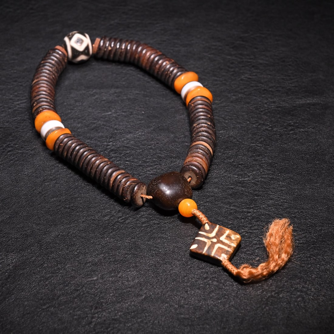Tibetan Coconut Shell and Dzi Bead Handheld Item