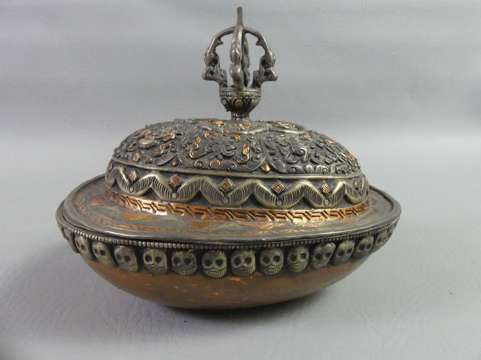 A TURQUOISE INLAID GILT COPPER AMULET BOX, KHEDI, 18TH -19TH CENTURYMar 11, 2026A FINE BRONZE STUPA BELL, NEPAL, 15TH-17TH CENTURYMar 11, 2026A RARE AND MAGNIFICENT SILVER-MOUNTED KAPALA (SKULL CUP), COVER AND STANDTIBET, LATE 18TH – 19TH3 days Left15/16th Tibetan Bronze Skull Cup. Well Cast. Remains of Gilding (nearly life-size)Mar 05, 2026A Qing Dynasty copper wrong silver beast face pattern inlaid with jade cover amphora smokerMar 14, 2026ANTIQUE MONGOLIAN BUDDHIST SILVER DECORATED ALTAR OFFERING BOWL1 day LeftChinese silversmith. Lidded jar richly decorated in relief with flowers and ornaments.A Qing Dynasty Tibetan Buddhist silver-inlaid horn Gabala offeringMar 07, 2026Chinese Silvered Bronze CenserMar 14, 2026Chinese Bronze Treasure Bowl Incense Burner CensorFeb 28, 2026Tibetan Silver and Gilt Kapala, Double-Vajra FinialFeb 27, 2026Vintage Tibetan Copper and Brass TeapotMar 06, 2026A Qing Dynasty silver-gilt Tibetan auspicious pattern lid jarMar 07, 2026An Exquisite Bronze Inlaid Silver Beast-Face Pattern Water PotMar 05, 2026Large Antique Chinese Brass BowlA CHINESE EXPORT SILVER LIDDED DRAGON JARMar 06, 2026