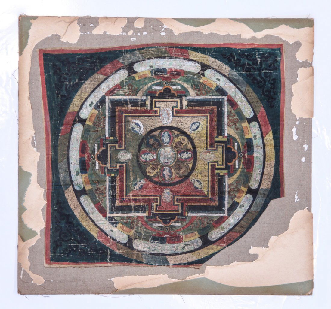Tibetan Buddhist Mandala Thangka Painting on Silk - Hand-Painted Double Mandala with Deities, FramedBridge's Auction$20