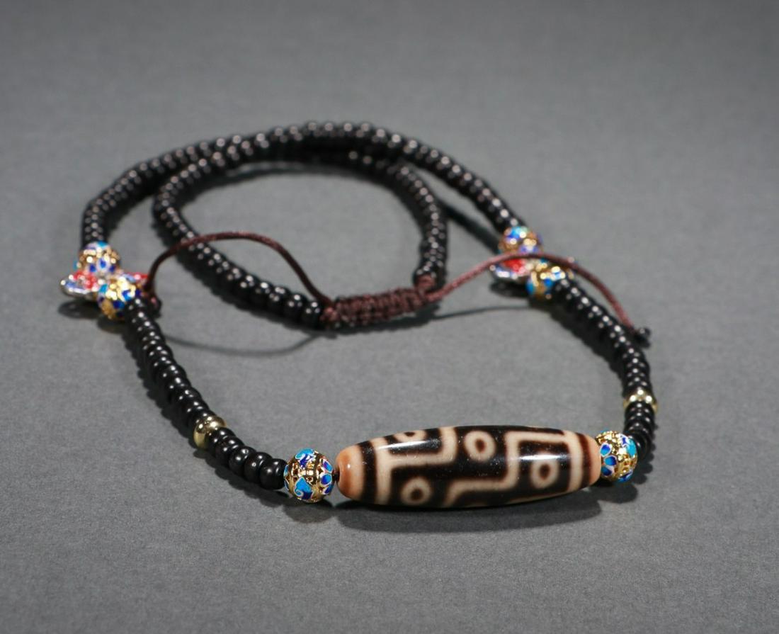 Chinese Tibetan Three Eye Dzi Bead Pendant