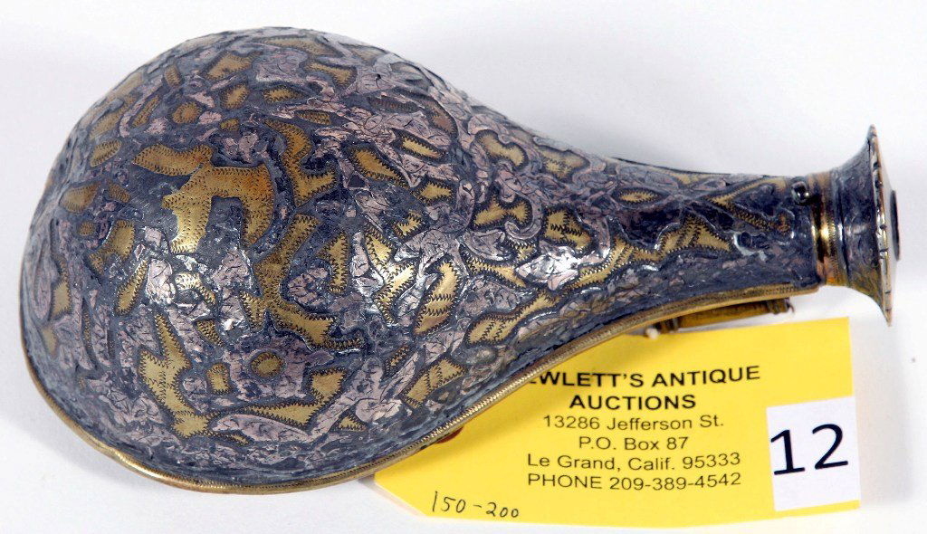 AN INLAID BRONZE AND SILVER 'FLOWER AND LION' TINDER POUCH, CHUCKMUCK, 19TH CENTURYMar 11, 20263 Antique Copper & Brass Embossed Powder FlasksMar 07, 20266 Antique Copper & Brass Powder Flasks EtcMar 07, 2026Antique Black Powder AM-FLASK & CAP CO Leather3 days LeftAntique Arabic Morocco Powder Flask Decorative Brass & Bone-Inlaid Gunpowder FlaskMar 14, 2026Handmade Tibetan Silver Qing Herbal Medicine Pipe2 days LeftAncient Tibetan Buddhism Silver Inlay Gem Conch Shell TrumpetMar 01, 2026Large Chinese Sino-Tibetan Shell Horn9 hrs LeftAN IRON AND GOLD SEAL, TIBET, 19TH CENTURY23 hrs LeftHAN DYNASTY, COPPER CHISELED GOLD AND SILVER INCENSE, HETIAN JADE CAPMar 01, 2026Enamel Drawing Gold Drawing Eight Treasure Pattern Porcelain Incense Burner7 days LeftA piece of gold, silver and copper goose-shaped aromatherapy of the Han DynastyMar 07, 2026A TIBETAN IRON AND GILT SEALMar 01, 2026Conch Shell Inlaid with Gilt Silver Buddha Statue OrnamentFeb 28, 2026An Exquisite Bronze Inlaid Gold With Inscription VaseFeb 27, 2026Vintage Glazed Snuff Box Bottle Dragon Phoenix2 days Left