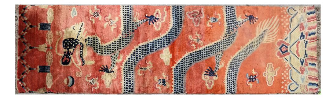 SoldTibetan Runner with Two DragonsTibetan runner with two dragons. [35" x 62"]. Worn in areas.See Sold Price