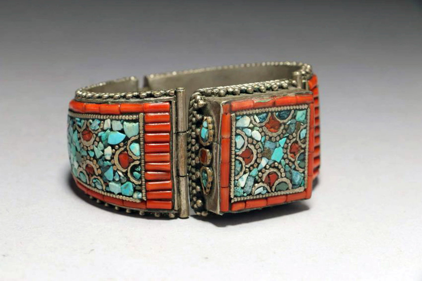 Vintage Tibet Silver Bracelet with Coral and Turquoise