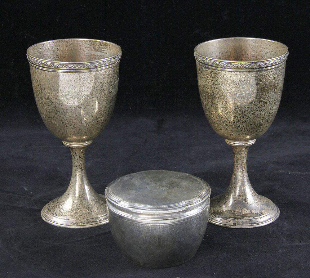 LOT OF 3 STERLING SILVER TRUMPET VASES 290 G5 days LeftLot of Assorted Sterling Silver Pieces, 60.79 Troy OuncesMar 14, 2026Three Silver Plated Stemmed Goblets15 hrs LeftSet of Sterling Silver Goblets4 days LeftFour Antique Silver Pieces incl SterlingMar 20, 2026Alvin Manufacture Sterling Silver Tablewares14 hrs LeftWEIGHTED STERLING SILVERMar 15, 2026(12) STERLING SILVER WINE GLASSES INTERNATIONALMar 15, 20263 Vintage Silver Rimmed Cordial Glasses Dorothy Thrope CMar 19, 2026SET OF 6 STERLING SILVER GOBLETS 560 G5 days LeftTwo Retired Waterford Crystal Clare Cut GobletsMar 19, 20266 Fisher Sterling Silver Goblets, 5 Sterling Silver Cordials & 2 Odd Sterling Pieces, 34 ozt.6 days Left4 Vintage Silver Rimmed Cordial Glasses Dorothy Thrope BMar 19, 2026Two Retired Waterford Crystal Clare Cut Goblets2 days LeftThree Large Glass Water GobletsMar 19, 2026Two Vintage Silverplate Candlestick HoldersMar 17, 2026
