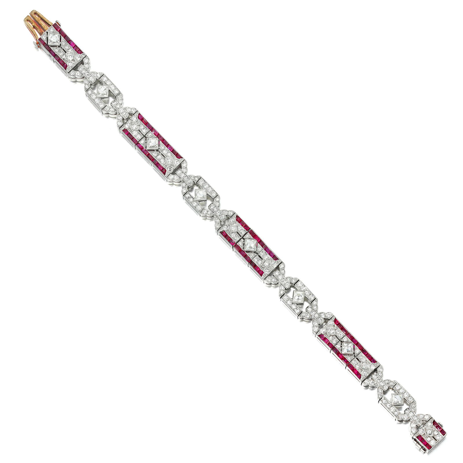 TIFFANY & CO.: A DIAMOND AND RUBY BRACELET, CIRCA 1920