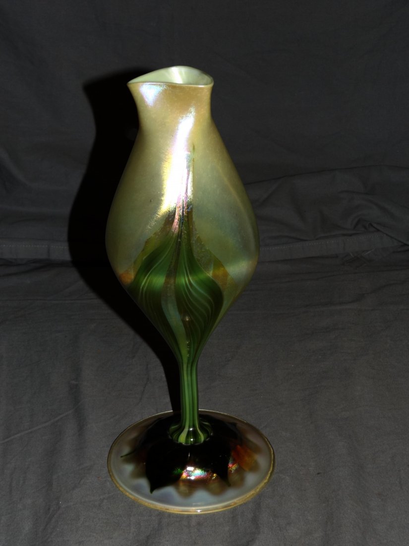 Tiffany Art Glass Vase. Pulled Feather