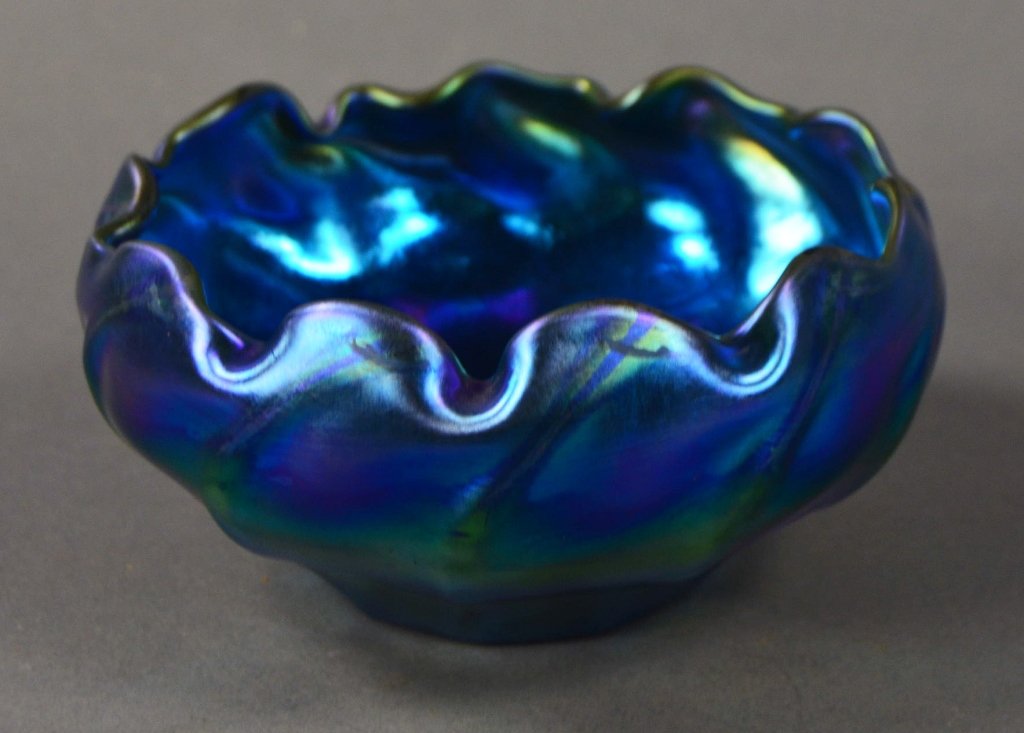 SoldLouis Comfort Tiffany - bowlLot 162 Louis Comfort Tiffany American (1848-1933) bowl favrile glass incised L.C. Tiffany and numbered 18411, 1404 to underside diameter: 8 1/2 inches height: 3 inches Provenance: From a Private ColSee Sold Price