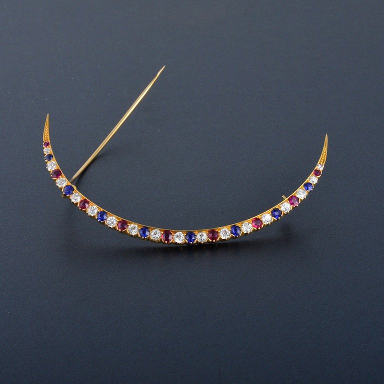 Tiffany Diamond, Ruby, Sapphire, Crescent Brooch