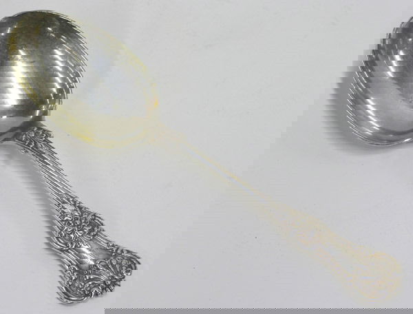 SoldBeautiful Tiffany English King Sterling Silver large serving spoonBeautiful Tiffany English King Sterling Silver large serving spoon. Signed Tiffany & Co. Great quality and detail. Signed as shown. No monogram. In very good condition spoons are 9 1/2 inches 130 gramSee Sold Price