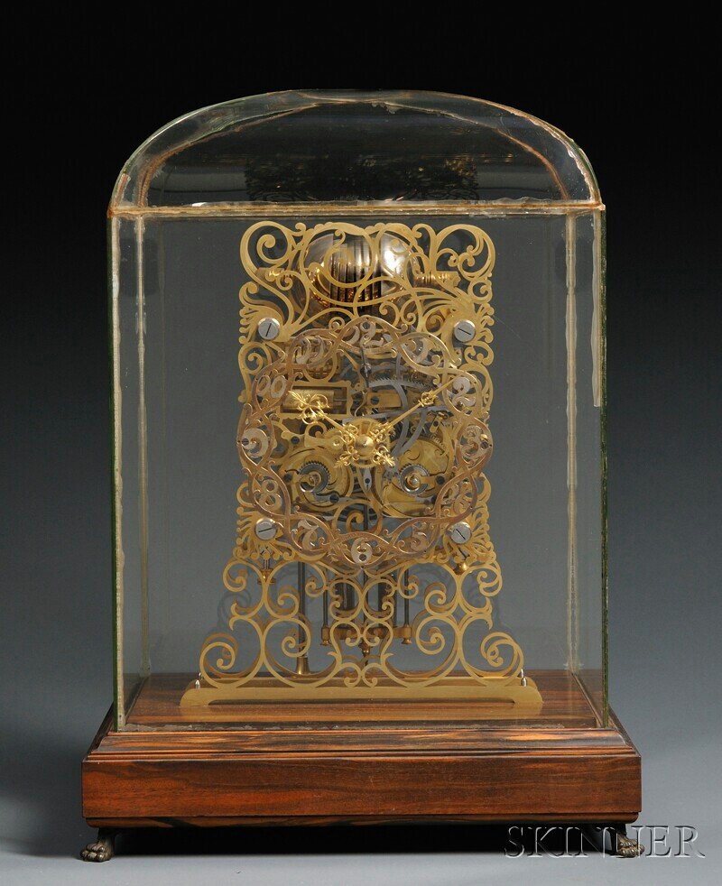 Tiffany Quarter-chiming Brass Skeleton Clock, New