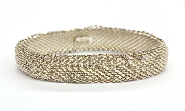 SoldTIFFANY STERLING SILVER SOMERSET MESH WEAVE BANGLE BRACELET w BOX, POUCH An Authentic pre-ownedTIFFANY STERLING SILVER SOMERSET MESH WEAVE BANGLE BRACELET w BOX, POUCH An Authentic pre-owned Tiffany & Co. Somerset mesh Sterling silver bracelet , Hallmarked inside, "Tiffany & Co. 925", ultra flSee Sold Price