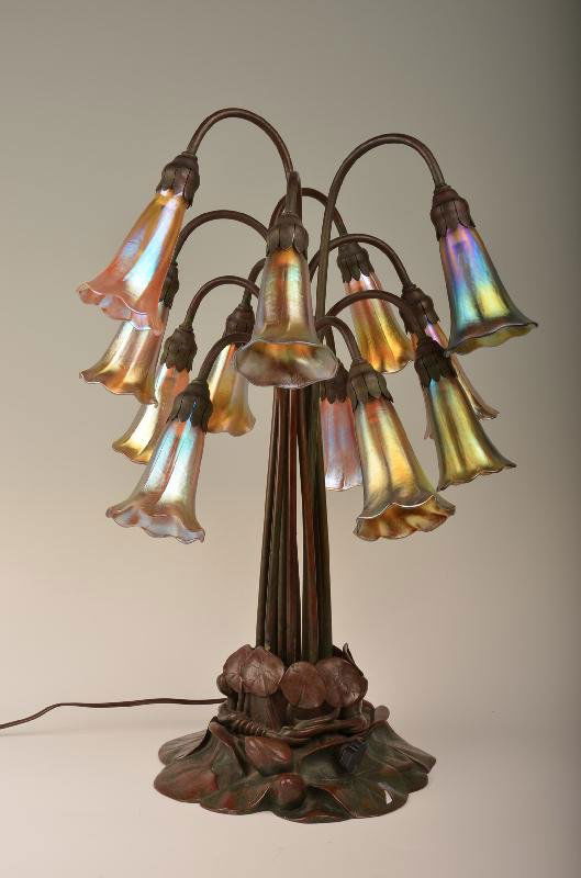 Tiffany Studios 12 Light Lilly Table Lamp. The plat