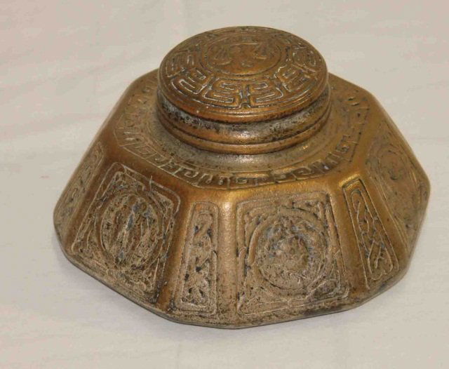 TIFFANY STUDIOS "Zodiac" Bronze Inkwell6 days LeftTiffany Studios Bronze Letter HolderMar 10, 2026Tiffany Studios, New York Bronze Inkwell 1920, 'Zodiac Pattern', H 3.75" W 6.5"Mar 19, 2026Tiffany Studios Bronze Zodiac Letter Holder6 days LeftAntique Tiffany Studios Gilt Bronze Zodiac Letter Holder Art Nouveau2 days LeftAntique Tiffany Studios NY "Adam" Bronze InkwellMar 18, 2026ART NOUVEAU BRONZE INKWELL6 days LeftTiffany Studios Grapevine Pattern Bronze and Slag Glass Inkwell6 days LeftAntique Ornate Victorian Brass InkwellMar 17, 2026Antique Chinese Bronze/Brass Incense BurnerMar 13, 2026Antique Cast Brass or Bronze Inkwell with Art Nouveau InfluenceBRONZE INCENSE BURNER WITH ENGRAVED AUSPICIOUS BEAST HANDLEMar 01, 2026Tiffany Studios Zodiac Bronze Ink Well with Gold Dore Finish5 days LeftChinese Bronze or Brass Incense Burner769 Lots AwayBronze Tiffany Studios 1183 “American Indian” Inkwell6 days LeftSecessionist Hammered Metal InkstandMar 14, 2026