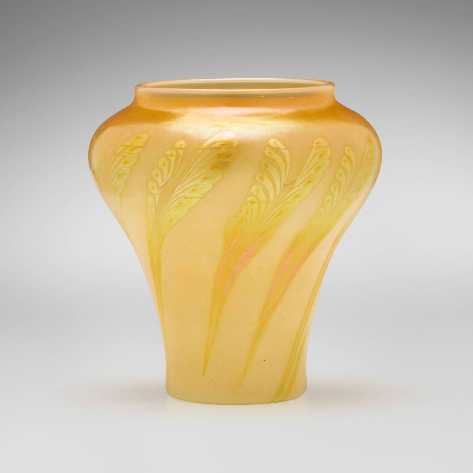 SoldTiffany Studios, Decorated vaseTiffany Studios Decorated vase USA, c. 1900hand-blown Favrile glass 8.75 h x 4.75 dia in (22 x 12 cm) Etched to underside 'L.C.T. P1081'. This work will ship from LambertviSee Sold Price