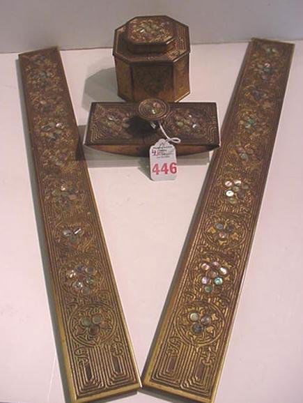 A GROUP OF THREE INLAID PARCEL-GILT SILVER TINDER POUCHES, CHUCKMUCK, 19TH CENTURYMar 11, 2026Antique lap desk, Chinese lacquer jewelry box, and more boxes4 hrs LeftCharming Collection Antique Table, Desk & Cabinet Articles2 days LeftVintage Tiffany Studios NY Stamped 1762 1753 1756 Chinese Bronze Desk SetMar 11, 2026TIFFANY STUDIOS Four-Piece 'Grapevine' Desk Set, circa 1915Mar 05, 2026TIFFANY STUDIOS Group of Fifteen Desk Set Items, circa 1915Mar 05, 2026TIFFANY STUDIOS Five-Piece 'Graduate' Desk Set, circa 1915Mar 05, 2026Tiffany Studios Red Art Deco Desk AccessoriesMar 19, 2026TIFFANY STUDIOS Nine-Piece 'Zodiac' Desk Set, circa 1915Mar 05, 2026TIFFANY STUDIOS "AMERICAN INDIAN" PATTERN DESK SET BRONZE, BLOTTER, INK POT, PEN TRAY, LETTER HOLDERMar 15, 20265 Piece Tiffany Studios New York Gilt Bronze Desk Set in Zodiac circa 1900Mar 15, 2026A TIFFANY STUDIOS ART NOUVEAU INK BLOTTER1 day LeftTIFFANY STUDIOS Fifteen-Piece 'Grapevine' Desk Set, circa 1910Mar 05, 2026Louis C. Tiffany Furnaces Inc. Early 20th Century Art Deco Desk SetMar 07, 2026Pair Tiffany Studios Gilt Bronze Blotter Ends in Venetian #1696Mar 15, 20262 Tiffany Grapevine Desk ItemsMar 14, 2026