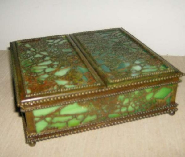 TIFFANY STUDIOS "GRAPEVINE" BRONZE & SLAG GLASS BOXThomaston Place Auction Galleries4.4(427)$250(3 bids)4 days Left
