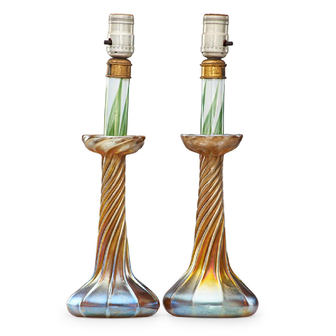 TIFFANY STUDIOS Two candle lamp bases with inserts