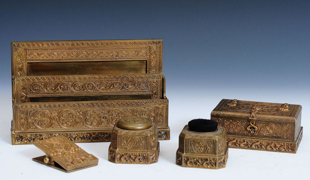 (4) TIFFANY STUDIOS PATINATED BRONZE 'AMERICAN INDIAN' DESK SETFeb 20, 2026Antique Bronze Desk Accessories4 days LeftVintage Tiffany Studios NY Stamped 1762 1753 1756 Chinese Bronze Desk SetFeb 28, 2026Tiffany Studios Ten-Piece "Abalone" Desk Set3 days LeftTiffany Studios New York Pine Needle Bronze Doré and Favrile Slag Glass Five-Piece Desk SetFeb 17, 2026Tiffany Studios "Zodiac" Eight-Piece Desk Set3 days LeftTiffany Studios New York Pine Needle Bronze Doré and Slag Glass Nine-Piece Desk Set, Circa 1910Feb 17, 2026Tiffany Studios Three-Piece "Grapevine" Desk Set3 days LeftTiffany Studios New York Pine Needle Bronze Doré and Slag Glass Eight-Piece Desk Set, Circa 1910Feb 17, 2026Tiffany Studios New York American Indian Pattern Bronze Letter RackFeb 17, 2026Tiffany Studios Gilt Bronze Zodiac Stamp Box Circa 1900-19202 days LeftTiffany Studios New York Zodiac Bronze Doré Stamp BoxFeb 17, 2026Tiffany Studios Gilt Bronze Zodiac Stamp Box Circa 1900-19204 days LeftTiffany Studios New York Graduate Pattern Bronze Doré Stamp BoxFeb 17, 2026Tiffany Studios New York Chinese Pattern Bronze Doré Box, Circa 1910Feb 17, 2026Tiffany Studio Gilt Bronze & Glass "Grapevine" Box3 days Left
