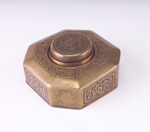 TIFFANY Zodiac pattern gilt bronze octagonal inkw
