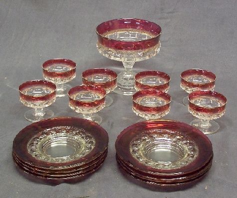 Lot of 17 Glass & Crystal, Waterford, Fostoria, Hawkes, HeiseyFeb 21, 2026Lot of Glass Pieces2 days LeftLot 6 Vintage Stemmed Wine Glass ItalyFeb 18, 2026Best Quality Enameled Cranbetty StemwareFeb 21, 2026Vintage 26pc Ruby Red Glass DinnerwareMar 02, 2026(22) PARCEL-GILT CUT CRYSTAL DRINKWARE, COUPES, FLUTES & TUMBLERSFeb 21, 2026(84) ENGLISH SPODE 'INDIAN TREE' PORCELAIN DINNER SERVICEFeb 21, 2026Vintage Moser Art Glass Set (19)Feb 21, 2026Set of 6 Tudor Crystal ""Beaufort"" Wine GobletsGroup of Ruby Overlay Cut Glass Stemware2 days LeftA collection of glassware including antique Cranberry pedestal dish, decanters, paper weights etc 12 days Left9 Cranberry and Clear Gilt Rim Octagonal Lobed Shot Glasses4 days LeftA Collection of Six Vintage Ruby Red Flashed and Cased Crystal Items, Including Lenox Crimson5 days LeftFive Ruby Red Wine Goblets3 days LeftAssembled Group of Gilt Decorated Glass Stemware and Tableware21 hrs LeftBlown, Cut and Gilt Decorated Glass Partial Stemware Service21 hrs Left