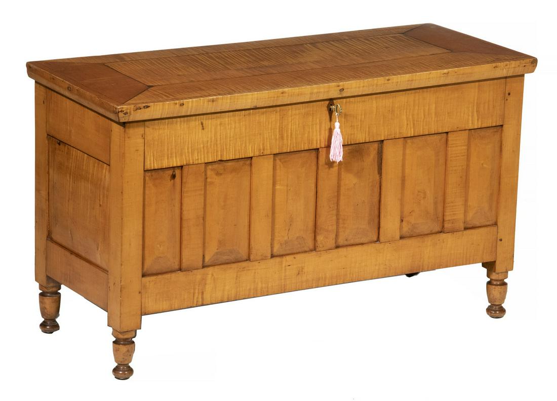An American painted grain wood blanket chestApr 07, 2026MINIATURE SIX-BOARD PINE BLANKET CHEST First Half of the 19th Century Height 10.5". Width 14.75".Apr 09, 2026Diminutive Grain-Painted Blanket ChestMar 27, 2026An American tiger maple chest of drawersApr 07, 202619th Century American Antique Dovetailed Blanket Chest4 days LeftMAPLE AND TIGER MAPLE HIGHBOY BASE 19th Century Height 39". Width 41". Depth 20".Apr 10, 2026Late 18th C / Early 19th C. Quebec Primitive Hinged Top Blanket Chest Box1 day Left200 Year Old Antique American Painted Blanket Chest with Turned Legs3 days Left19TH CENTURY ENGLISH OAK TRUNKMar 28, 202619th Century Southern Heart Pine Blanket Chest with Two DrawersApr 06, 2026Early Dovetailed Blanket Chest24 hrs LeftGRAIN-PAINTED PINE BLANKET CHEST 19th Century Height 39". Width 43". Depth 19".Apr 09, 2026APOTHECARY CHEST 19th Century Height 21". Width 21". Depth 9.5".Apr 09, 2026TIGER MAPLE SLANT-LID DESK Maine, Late 18th Century Height 42.5". Width 36". Depth 19".Apr 09, 2026David Smith Tiger Maple SideboardMar 27, 2026SMALL SATINWOOD CHEST 19th Century Height 13". Width 19". Depth 12".Apr 10, 2026