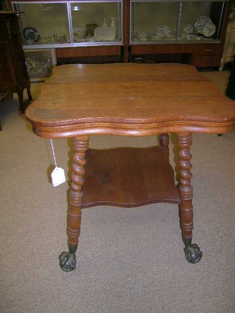 TIGER OAK CLAW BALL SPINDLE LEG SQUARE TABLE OLD