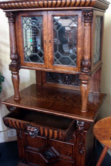 Antique Oak China Cabinet with Ornate Carved Details and Curved Glass HutchLodestar Auctions4.7(444)$475