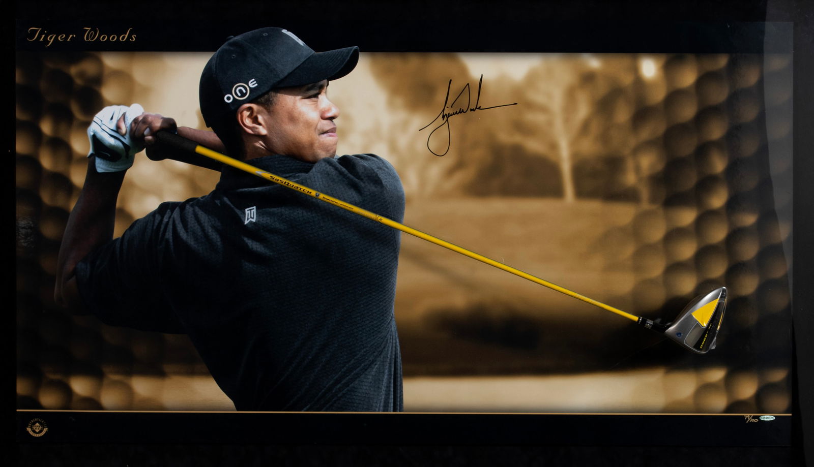 Tiger Woods Upper Deck Authenticated Autographed Breaking Through Display