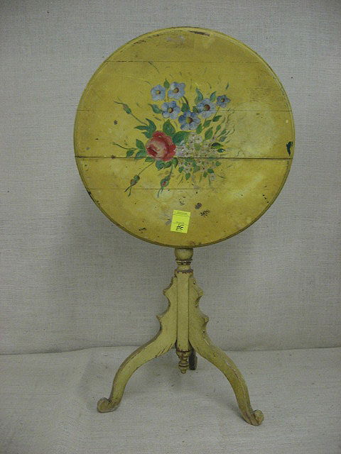 Tilt top table. Hand painted roses. Circa 1920.