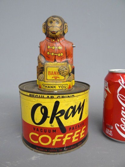 Oil Tins LotFeb 21, 2026Primitive Lot Inc. Advertising Tins, Egg Scale and Tin Lunch PailMar 02, 2026LARGE LOT OF MISCELLANEOUS COFFEE TINSFeb 17, 2026Antique C.F. Blanke Tea and Coffee Company Exposition Brand Green Tin Coffee BinFive Vintage Coffee Tin AdvertisementsFeb 21, 2026PAIR OF RARE COFFEE TINSFeb 17, 2026COCA-COLA BAKELITE BOTTLE RADIOFeb 17, 2026Stop Monkeying and Start Saving Bubble Bank5 days LeftGroup of 3 Different Eight O Clock Coffee Coin Banks6 days LeftGroup of 2 Farmers Union Central Exchange Co-Op Metal Cans5 days LeftOJIBWA FINE CUT TOBACCO TIN CANISTERFeb 18, 2026Group of 3 Eight O Clock Coffee and Illini Oil Can Shaped Coin Banks6 days LeftCOLLECTION OF 3: TOBACCO TINSFeb 19, 2026Group of miscellaneous vintage toys, banks, and souvenirs. ...Feb 19, 2026COLLECTION OF 6: VARIOUS POCKET TOBACCO TINSFeb 18, 2026Vintage Black Americana Large Coffee Advertising Child Store Display Statue5 days Left