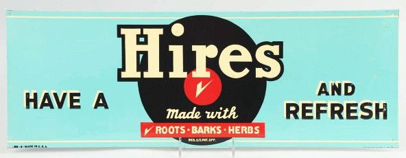 Tin Blue Hires Root Beer Sign.