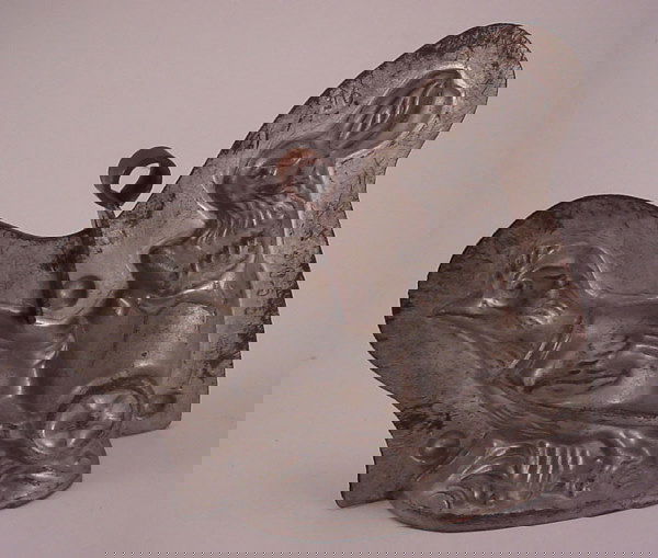 Tin Easter Chocolate Mold w/Chick pulling a Bunny