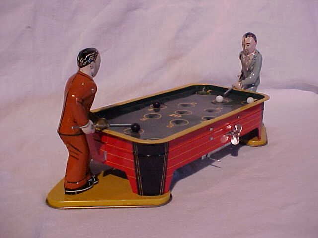 Lot of Assorted Antique Toys8pc Vintage Board & Parlor Games, Including Yahtzee and Scrabble3 days LeftWood-Framed Pool Table with Accessories, 96 x 53 x 31 Inches5 days LeftTwo Wooden Bagatelle Games - Hi Ball & TrixyMar 28, 2026Antique Tabletop Bowling Skittles Game Set with Wooden Box1 day LeftVintage King Pin Bowling ToyMar 07, 2026GERMAN BILLIARDS PLAYER W/ FRENCH CYCLE CART2 days LeftNIFTY TIN WINDUP MAGGIE & JIGGS PLATFORM TOYMar 14, 2026Aladdin Casino Electric Toy Pinball Machine2 days LeftTin Litho Wind-up Motorcycles with Sidecars Mechanical Toys (2)Mar 28, 2026GERMAN KICO BILLIARDS PLAYER2 days LeftPlay Ball Basketball-Themed Bouncy Ball/Gumball Vendor2 days LeftGerman Hand Wind Mechanical Toy 3 Boys Playing Soccer/Football by Zinner & Sohne3 days LeftUnited's Cherokee Shuffle Alley Arcade Game, 1977Mar 07, 2026DISTLER TIN WINDUP COMICAL CAR w/ RIDERMar 14, 2026CHEIN TIN WINDUP PLAYLAND WHIP w/ BOXMar 14, 2026
