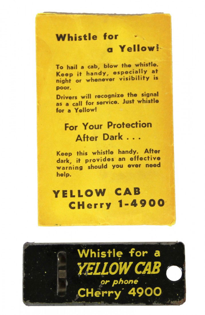 TIN LITHO YELLOW CAB WHISTLE IN ENVELOPE