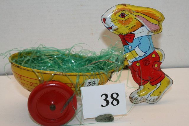 Peter Rabbit Eating Cabbage Cast Iron Doorknocker3 days LeftEarly Large Sturditoy Pressed Steel TruckMar 07, 2026Easter Sitting Rabbit Child's Rattle #53 days LeftEaster Rabbit w/ Carrot Child’s Rattle #33 days LeftEaster Rabbit w/ Carrot Child’s Rattle #22 days LeftEaster Rabbit w/ Carrot Child’s Rattle #13 days LeftEaster Rabbit w/ Carrot Child’s Rattle #42 days LeftCLAY MARBLES, GYROSCOPE AND TIN TOYSFeb 26, 2026WOLVERINE RABBIT & CHICK EGG PULL TOYFeb 27, 2026CHEIN EASTER EGG WAGONS & ONE EGG TINFeb 27, 2026BOXED WYANDOTTE EASTER RABBIT CARTFeb 27, 2026LIONEL PETER RABBIT CHICK MOBILEFeb 27, 2026Cast Iron Sulky Cart, Horse, and Driver. Appears to be original paint, unusual spring mechanism, 12"7 days LeftWYANDOTTE EASTER RABBIT HAND CARFeb 27, 2026Tin Easter Egg Candy ContainerFeb 28, 2026Vintage Toy Tractor and Goat-Pulled Cart