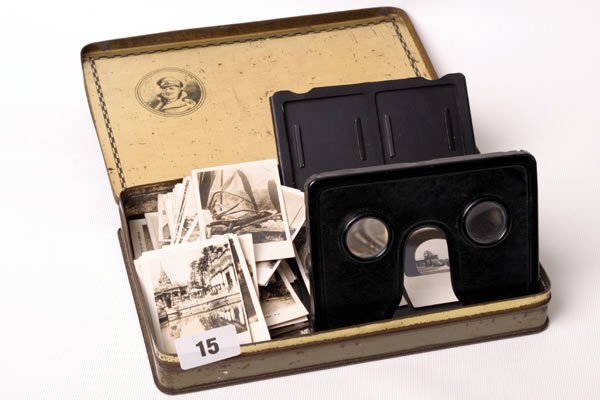 Misc. Ephemera LotFeb 21, 2026Large Lot of Vintage Film Reels3 days LeftCabinet Cards, Folios, Frames, Negatives and More Loaded Lot of PhotographsMar 02, 2026Lot of 29 miscellaneous decks or sets of playing cards. 20t...Feb 19, 2026Lot of 19th century photographs. CDV, tintypes, etc. store front, portraits, swimming, homestead, in5 days LeftLot of 4 Old Black and White PhotographsFeb 14, 2026VINTAGE CAMERAS INCL. POLAROID 800 LAND CAMERA, SPARTUSFeb 21, 2026Vintage SIX--20 Brownie CameraMar 02, 2026150 Stereoview CardsFeb 14, 2026Antique Stereoscope Viewer w 25 + CardsFeb 15, 2026A rare antique wooden postcard viewer box with rotating interiorFeb 24, 2026Collection of Early Photography TypesFeb 19, 2026MODEL 221 SINGER FEATHERWEIGHT SEWING MACHINE WITH BLACK ORIGINAL CASEFeb 28, 2026MAGIC LANTERN IN ORIGINAL DISPLAY BOXFeb 19, 2026Antique Stereoview Slides & Stereoscope Viewer - #S6-3Feb 19, 2026ASSORTED COLLECTABLES including enamel signs, military binoculars etc. (qty)3 days Left