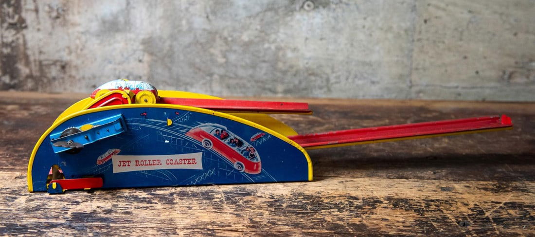 TIN WIND UP WOLVERINE JET ROLLER COASTER & CAR