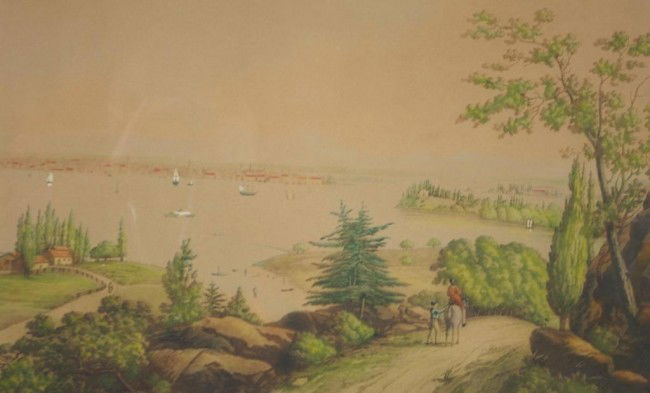 TINTED ETCHING, NEW YORK VIEW FROM WEEHAWKEN