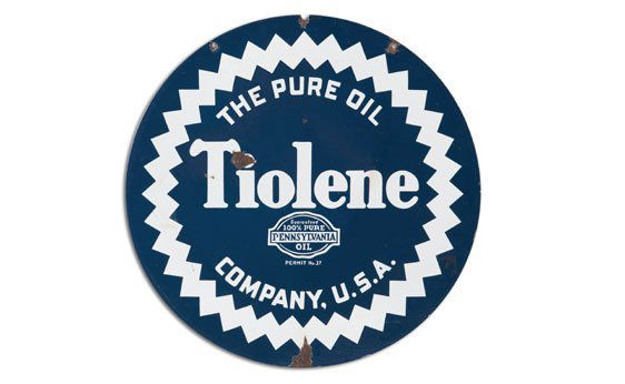 Tiolene Motor Oil signMar 28, 2026Tiolene Motor Oil The Pure Oil Company DSP Curb Sign w/ ArrowMar 21, 2026Purol Gasoline "The Pure Oil Company" DST Flange Sign w/ ArrowMar 21, 2026Essolube Motor Oil Double Sided Porcelain SignMar 21, 2026VEEDOL MOTOR OIL PORCELAIN FLANGE SIGN1 day LeftCONOCO ETHYL GASOLINE SINGLE 15" GLOBE LENS10 hrs Left42" Linco Gasoline Motor Oil Single Sided Porcelain SignMar 21, 2026Essolube Motor Oil 24" DSP SignMar 20, 2026Texaco Gasoline Motor Oil 42" SSP SignMar 21, 2026Rocolene Oil Lubster Paddle DS SignMar 14, 202646" Cities Service Oils Gas DSP Advertising SignMar 21, 2026Polarine The Perfect Motor Oil 30" DSP SignMar 21, 2026GOODRICH TIRES GUIDE POST PORCELAIN SIGN1 day LeftPure Purol Ethyl Gasoline 30" DSP Sign w/ LogoMar 21, 2026TIDE WATER ASSOCIATED OIL CO. PORCELAIN SIGN10 hrs LeftMagnolene Ford Oil Double Sided Porcelain Flange SignMar 21, 2026