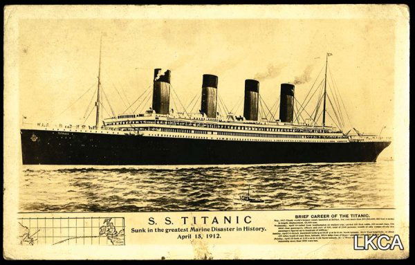 Titanic RPPC Image of ship with map of vo