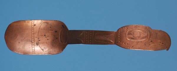 Tlingit Copper Spoon ca. 1900 with Engraved Eagle