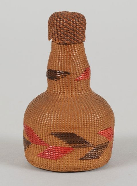 Tlingit Spruce Root Basketry Covered Bottle 2" D. 3