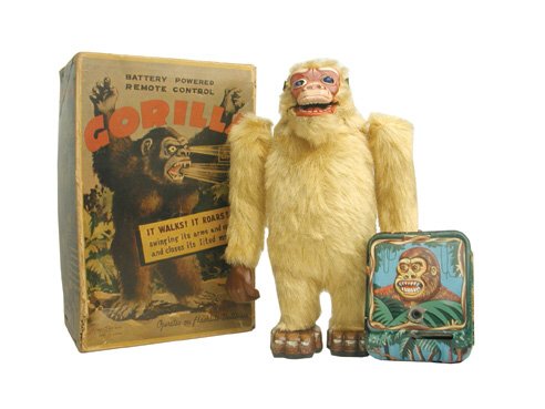 SoldBattery Operated McGregor Smoking Man BO Tin Toy with Box, Nomura TN JapanToy appears near new with old box. Battery Operated Mac/McGregor BO Tin Toy with Box, Japan. Motor runs but limbs to not move. Box repaired. Toy displays near new with bright felt and lighography. MadSee Sold Price