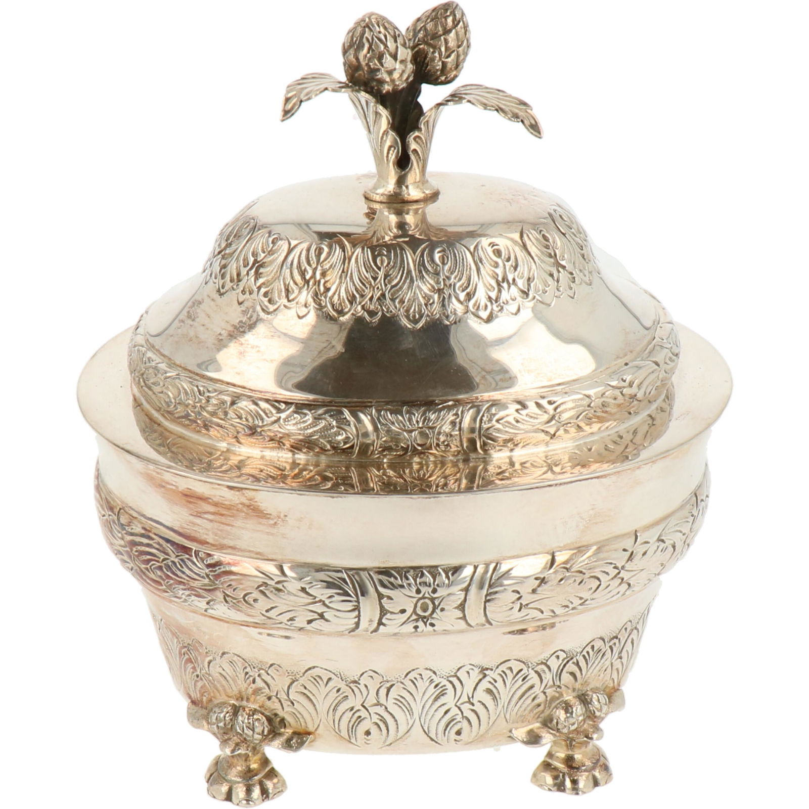 Chinese silversmith. Lidded jar richly decorated in relief with flowers and ornaments.Chairish Auctions4.5(10.3k)$120