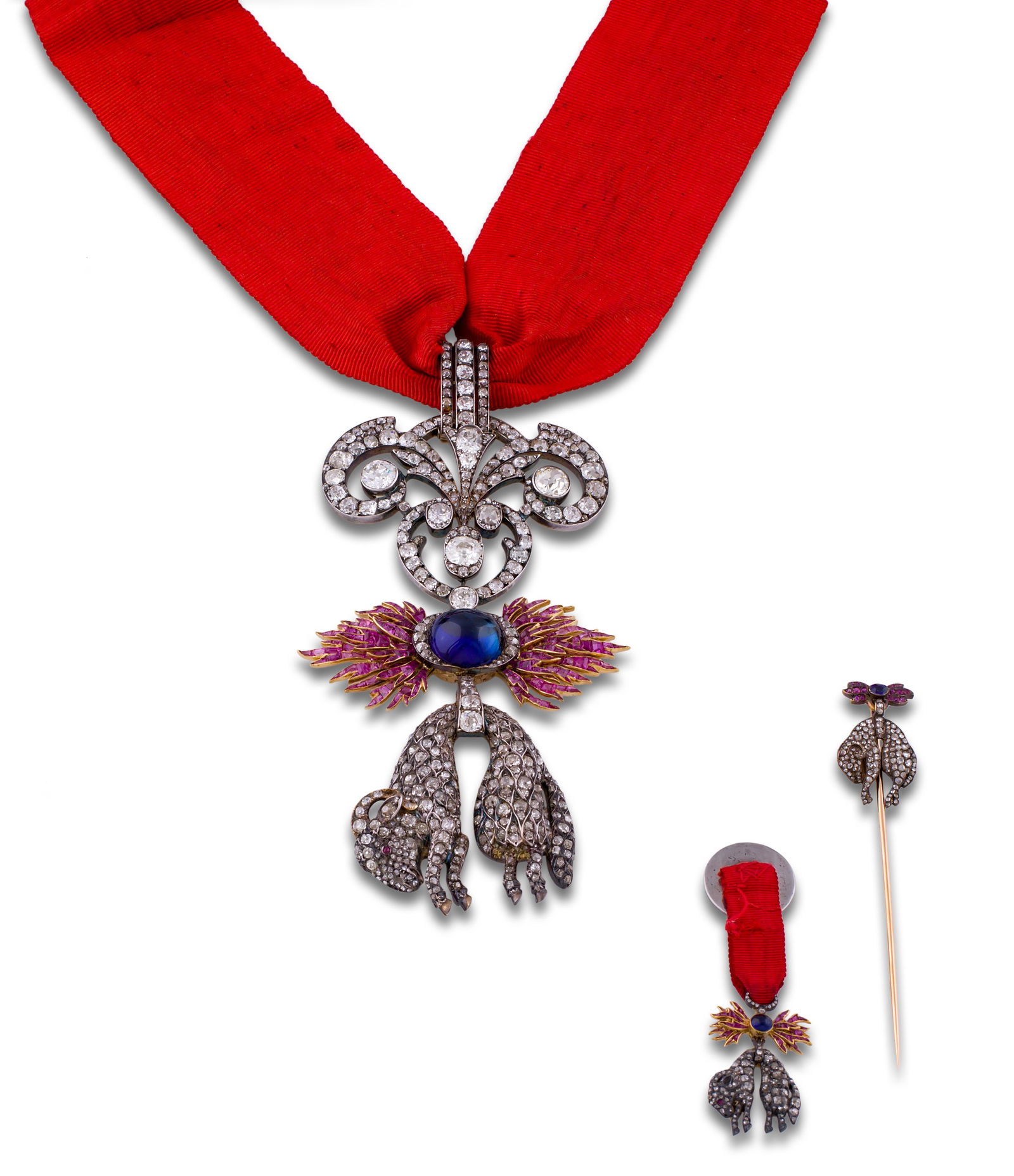 Toison in gold ruby diamonds and cabochon sapphire